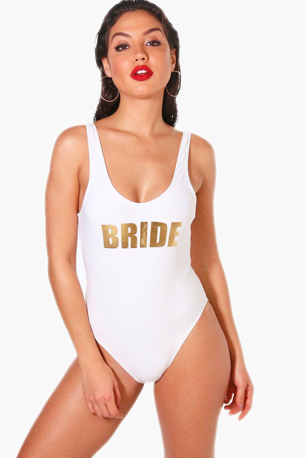 Bride Slogan Scoop Swimsuit | Boohoo