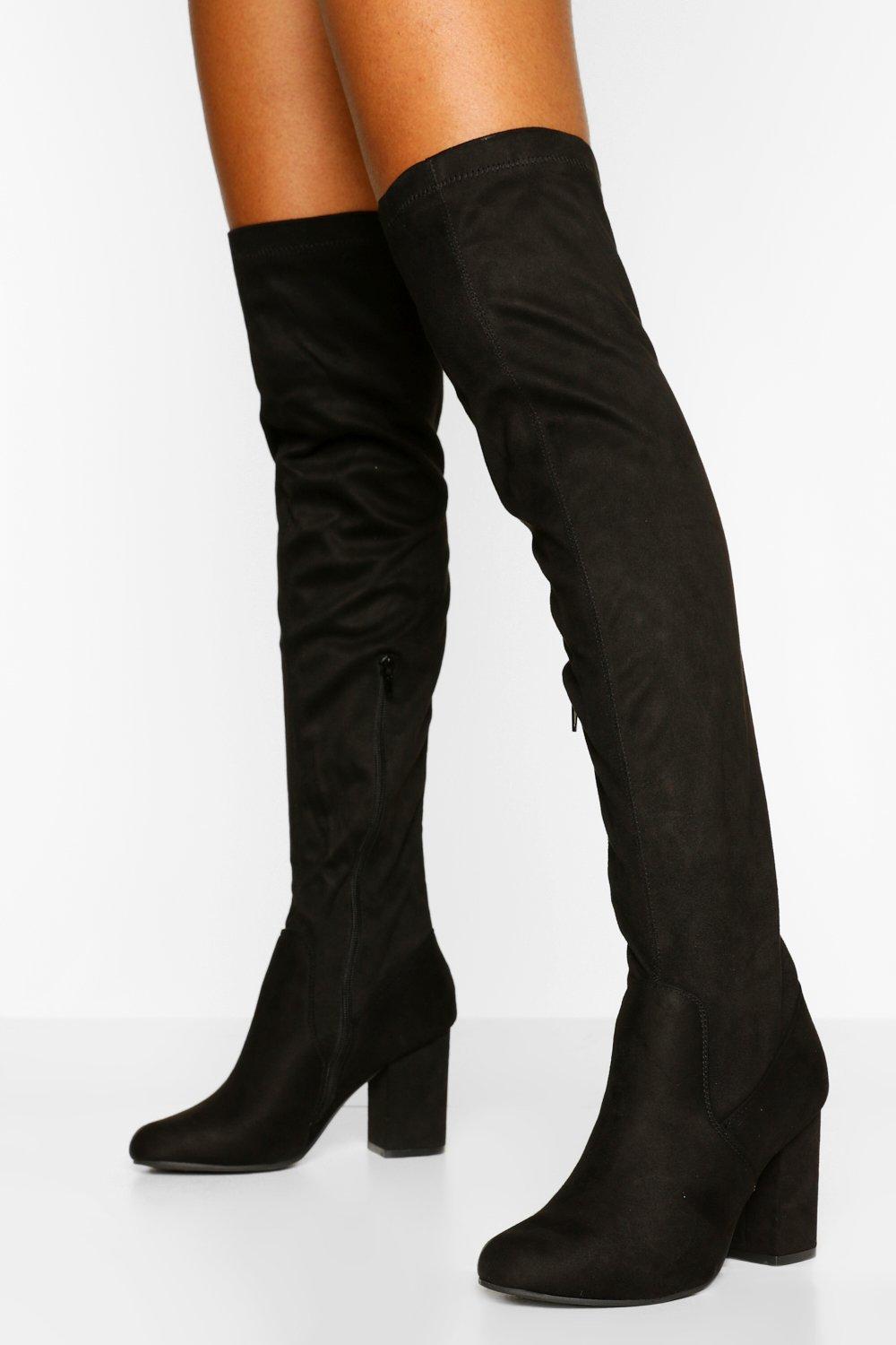 Cuissardes à talons carrés Petite Fit | boohoo
